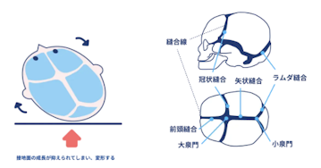 赤ちゃんの頭のゆがみには大きく2種類あります。一つは、向き癖や出産時の圧迫などによる外力での変形(位置的頭蓋変形症)、もう一つは頭蓋骨縫合早期癒合症などの骨の病気による変形です。ヘルメット治療の対象となるのは前者、外力による変形です。