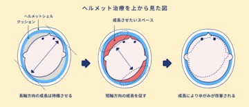 ヘルメット治療は、赤ちゃんの頭の自然な成長力を利用して形を整えていく方法です。